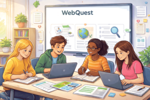 Ein WebQuest ist eine spezielle Gruppenarbeitsform der Internetrecherche zu einem klar eingegrenzten Thema. Im Unterschied zur offenen Internetrecherche liegt der Fokus jedoch nicht auf dem Suchen selbst, sondern auf der inhaltlichen Auseinandersetzung mit bereits ausgewählten Quellen. Diese Vorauswahl reduziert Komplexität, verhindert Überforderung und ermöglicht es, die Aufgaben innerhalb weniger Unterrichtsstunden sinnvoll zu bearbeiten. WebQuests folgen in der Regel einer festen Struktur (z. B. Einführung, Aufgabe, Ressourcen, Prozess, Reflexion, Evaluation), die den Lernprozess klar rahmt und zielgerichtetes Arbeiten unterstützt.
